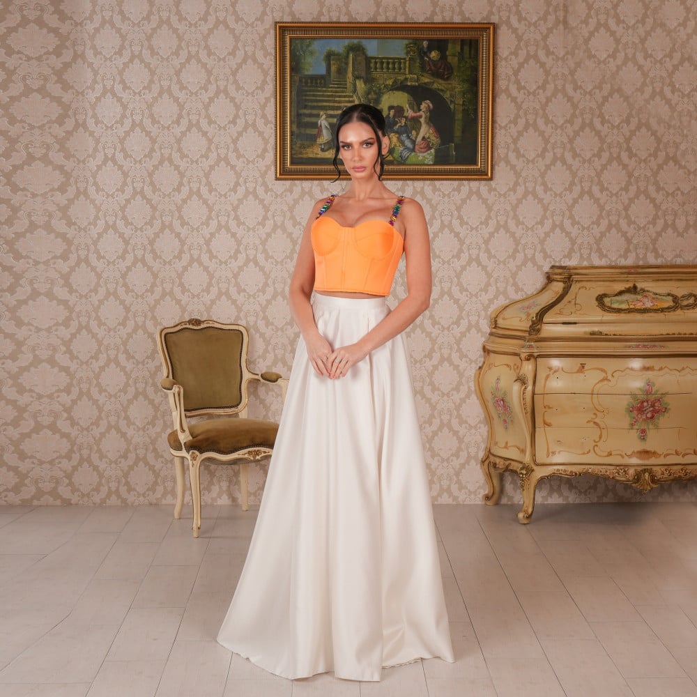 كورسيه باللون البرتقالي الصيفي مع حبال عريضة من الكرستال الملون
