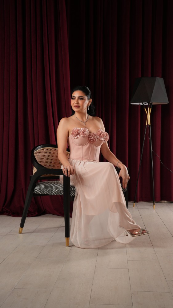 كورسيه باللون الوردي الفاتح مزينة بالورود